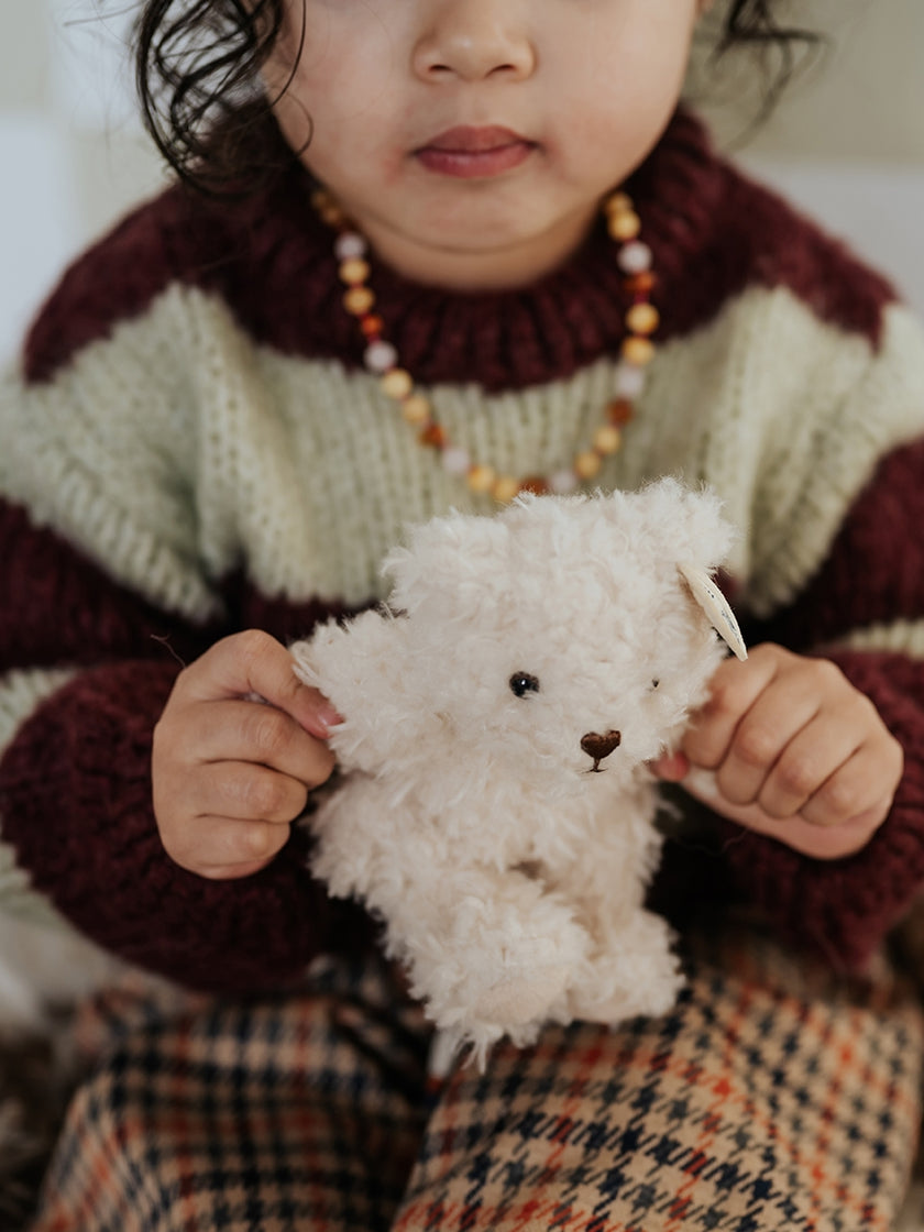 He might be small, but he's got it all. A handsome face and soft, cuddly arms. Before you know it, he brings out all the charms. The only thing big about little Walter Mini Bear, is his loving heart, snugly tucked away in there.