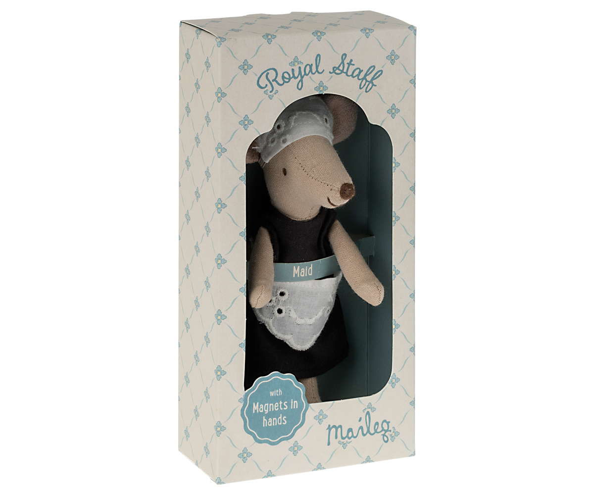Big Sister Maid Mouse is always ready to tidy up! Dressed in a classic maid’s uniform with an apron and headband, she’s the perfect helper for keeping the Maileg house in order.