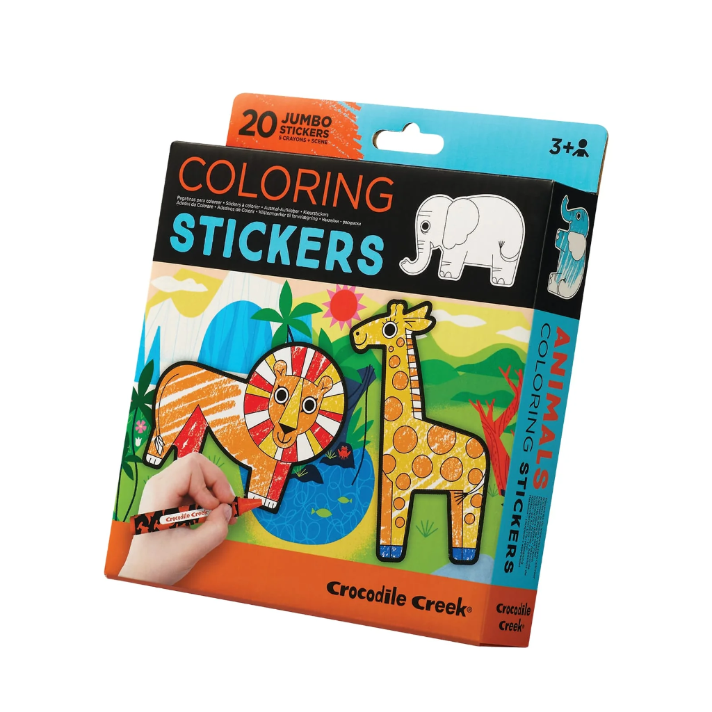 Children will have great fun while developing their creativity with this amazing colouring sticker set. Each set includes 20 jumbo stickers to colour, as well as 5 themed crayons and a large, beautifully illustrated scene to play with the stickers.