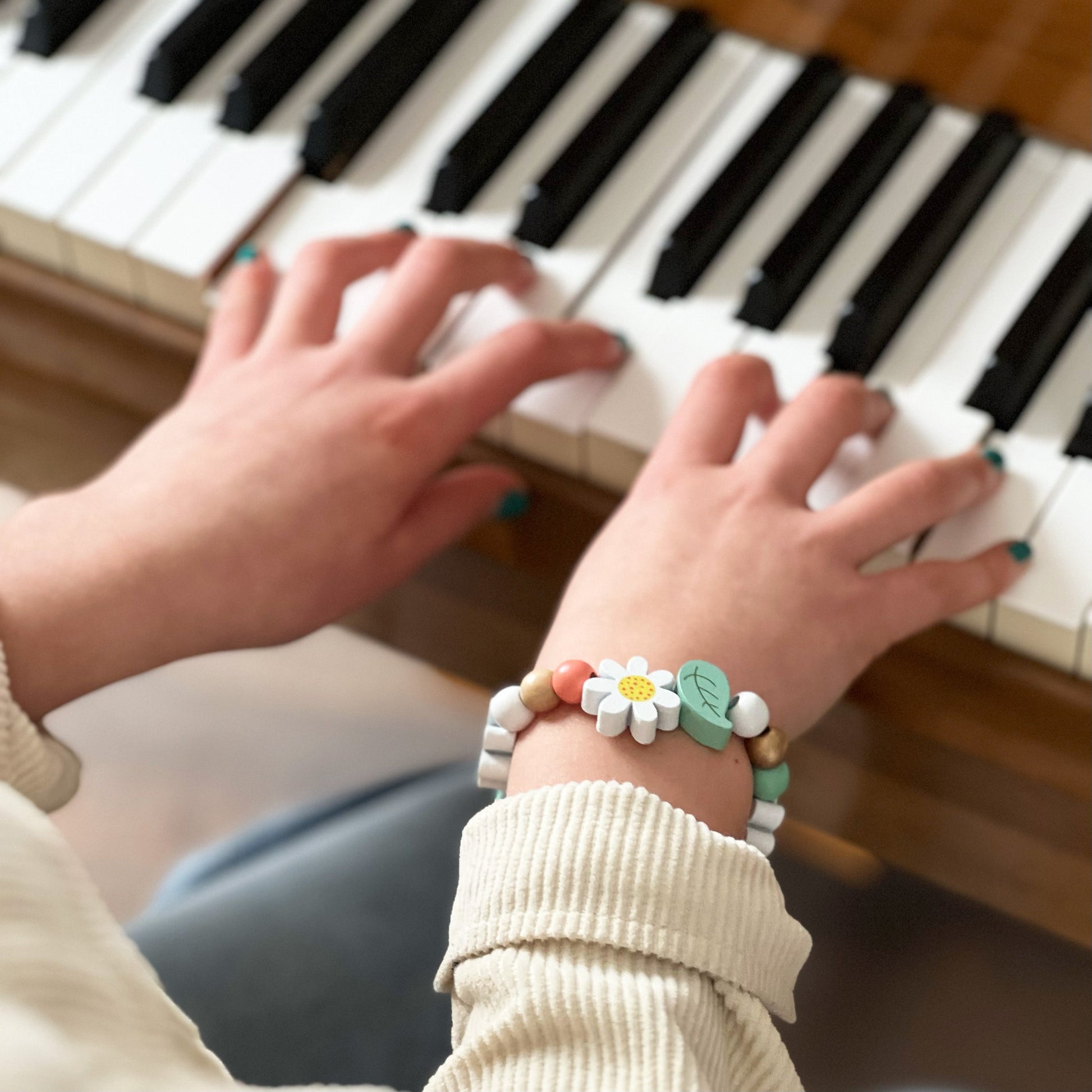 A beautiful gift tin containing elastic & beads to create this daisy chain bracelet. The elastic comes with hard ends to aid the beading process for young children. Then patience & precision are all that's required to assemble this piece.