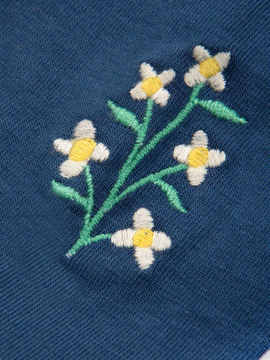 These versatile navy blue leggings, featuring gorgeous flower embroidery details at the ankles, are made from hard-wearing organic cotton jersey with a little bit of stretch for extra comfort and a fabulous fit. They are designed to coordinate with so many of our tops and tees, offering the perfect outfit for on-the-go little ones.