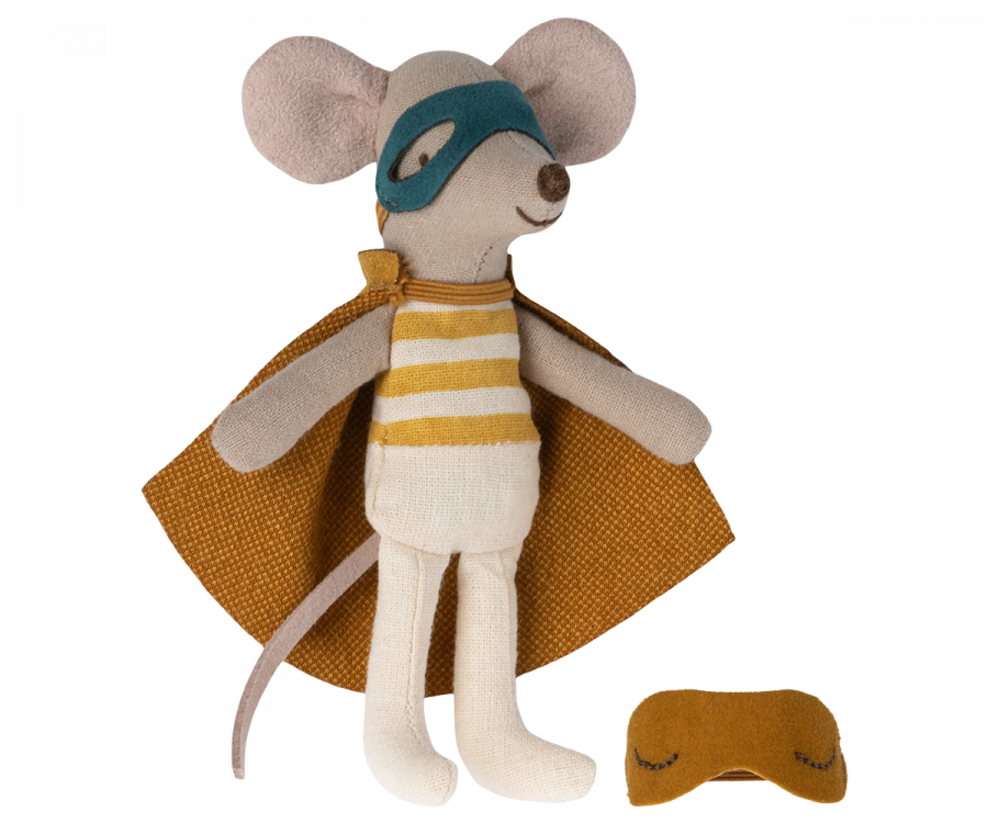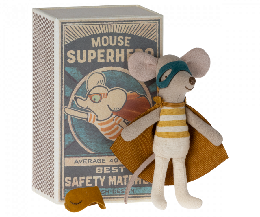Little Brother Super Hero Mouse is here to save the day! Dressed in a tiny cape and eye mask, he’s always ready for an adventure. He comes in a classic Maileg matchbox, making him a perfect gift for little dreamers.