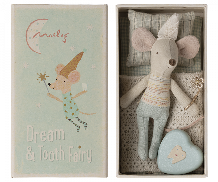 Make losing a tooth even more magical with Little Brother Tooth Fairy Mouse! Dressed in a sparkly hat and backpack, he comes with a tiny tooth pouch, perfect for collecting lost teeth. A keepsake gift that brings joy and imagination to bedtime traditions!