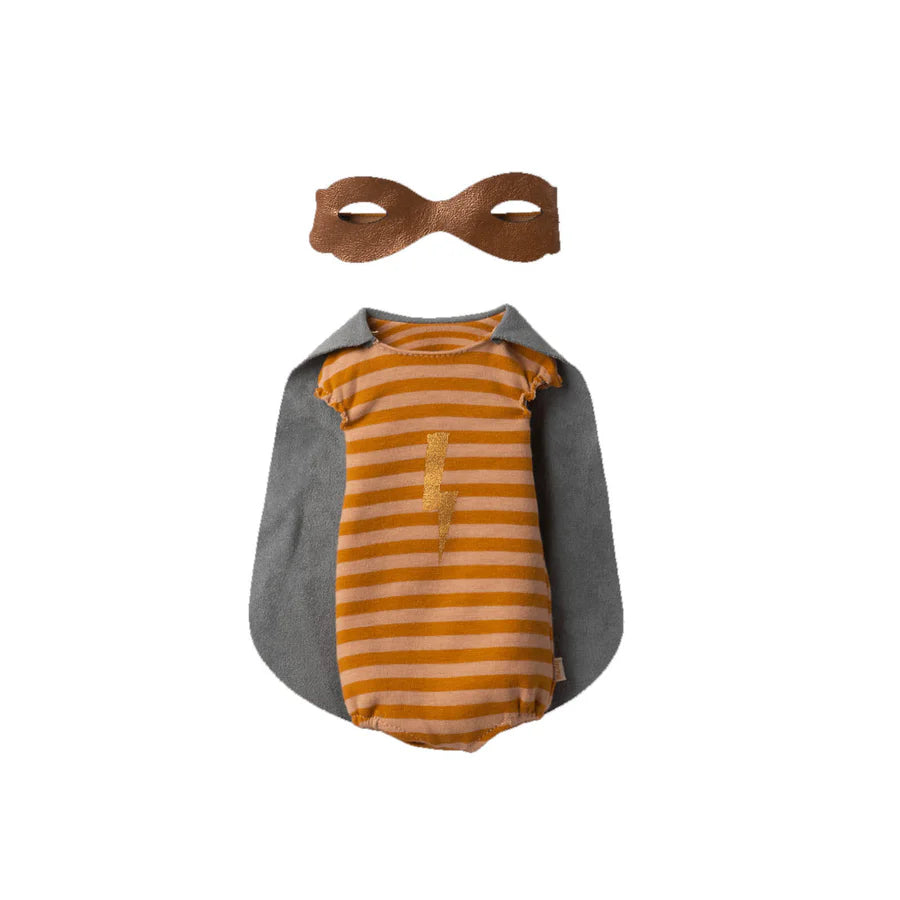 Maxi Super Hero Mouse is here to inspire big adventures! Dressed in a starry cape and eye mask, she’s ready to save the day. A larger-sized Maileg mouse, perfect for cuddles and creative play.
