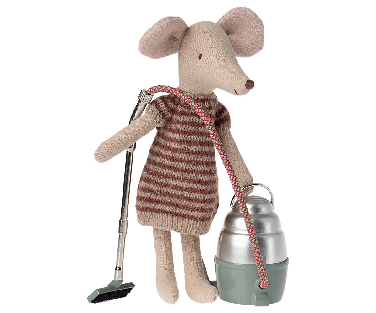 Keep your Maileg house tidy with this adorable miniature vacuum cleaner! Designed for little mice who love to clean, it’s a fun and unique addition to any Maileg playset.