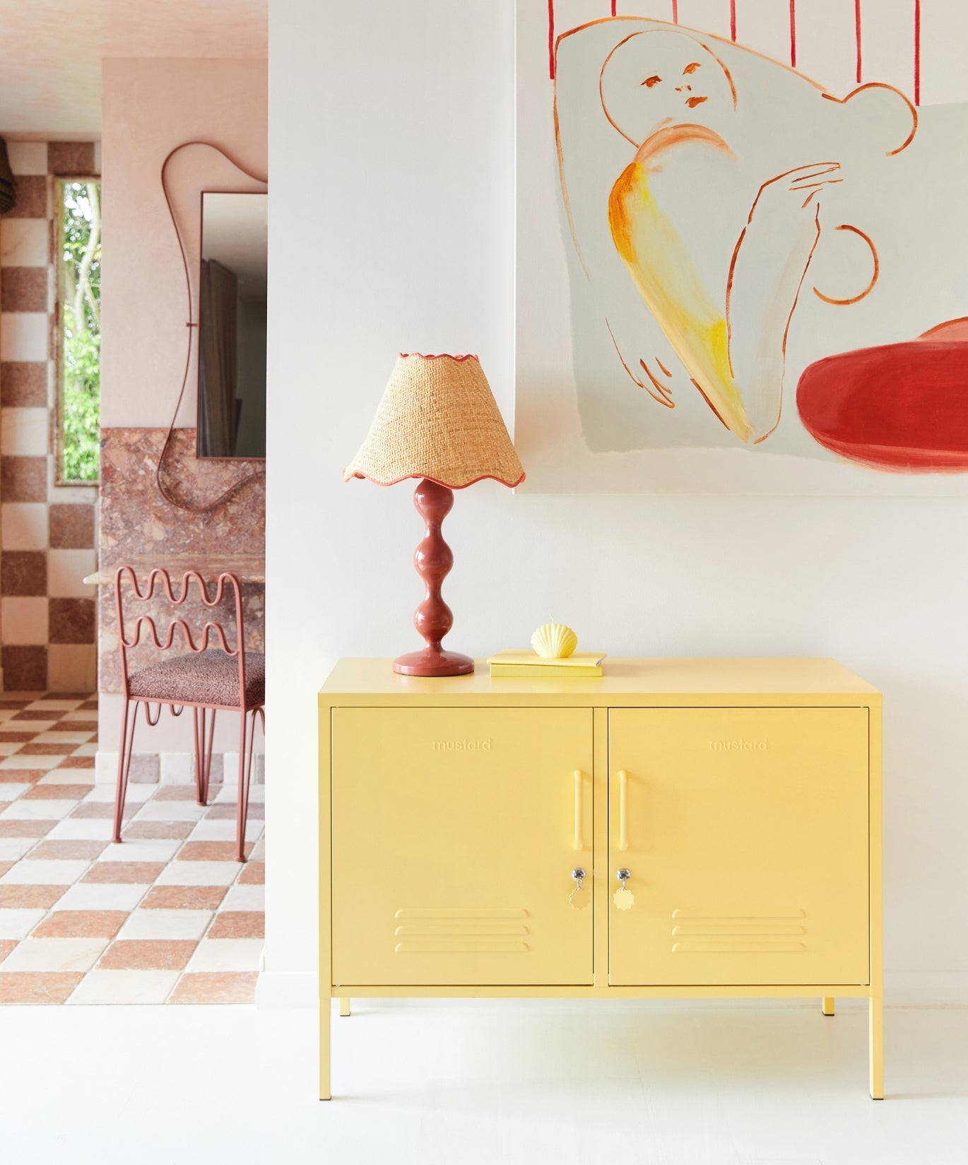 Inside, you'll find two adjustable shelves and a handy hook inside each door. On the outside, you'll find handles, locks, custom key rings, air vents, two cable holes, wall attachment points and a subtle embossed 'mustard' on each door, to let you know it's the real deal. Plus, the whole locker is smooth, matte and magnetic! Screens don't always do our colours justice — order a swatch to see how it looks in your space.