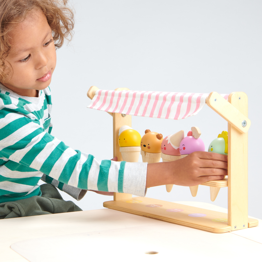 With 5 delicious, and very friendly plastic-free ice cream cornets, this gender neutral play set is perfect for playing with friends, and for little ones developing new language skills.