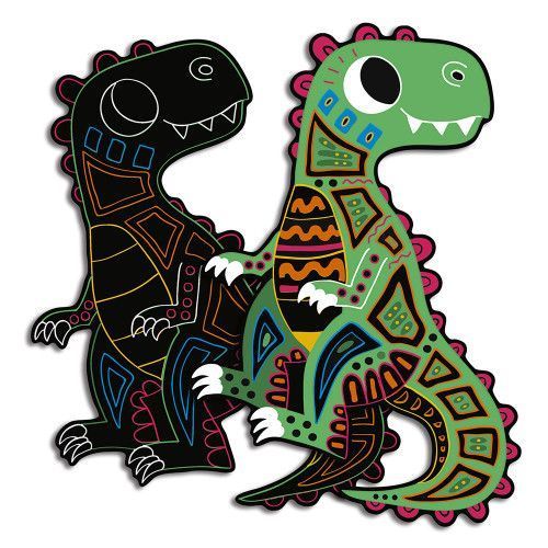 With this creative kit your child will be able to make colorful dinosaurs and play with them afterwards. You just have to scratch the pre-drawn silhouettes to see the animals come alive with colors! This set contains: 5 silhouetted dinosaurs to scratch (3 in black, 1 green, 1 purple), with color or gilding effects, 1 wooden stylus and 1 booklet with models and instructions.