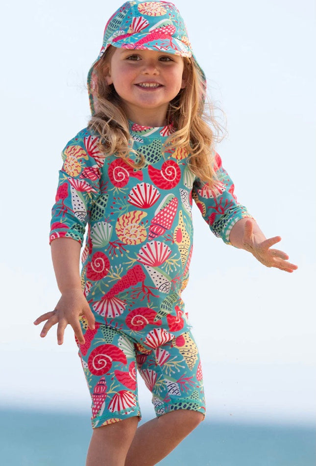 Designed for discoveries! Our shell seeker sunsuit is perfect for splashing about in the water or playing on the beach. With UPF 50+ protection it means having fun in the sun is not a worry. With a back zip that is carefully kept away from precious skin by our zip guard, this suit is a rather special one. Don't forget to take a look at our matching beach hat for those long days spent outdoors.