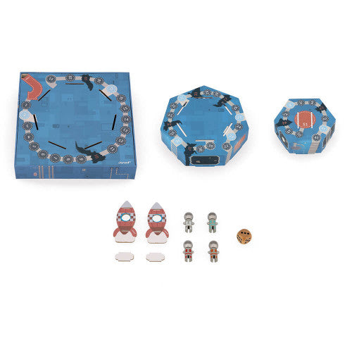 Who will be the first to reach the Janod rocket and leave the planet? In this space-themed board game, little astronauts race to get to the rocket and take off first. The game of ‘Snakes and Ladders’ is revisited in an intergalactic version, to the great pleasure of little ones who dream of being cosmonauts and older ones who still have their heads in the stars! A ladder? You go up! A slide? You go down! A 3D game full of suspense in the heart of the galaxy, with the rules of the game known to all, for moments of exchange and sharing with family or friends. Intended for children from 5 years old, from 2 to 4 players. This game contains: 4 wooden astronauts, 1 cardboard rocket, 1 cardboard 3D board and 1 wooden dice. This product is made of FSC® -certified and other controlled material.