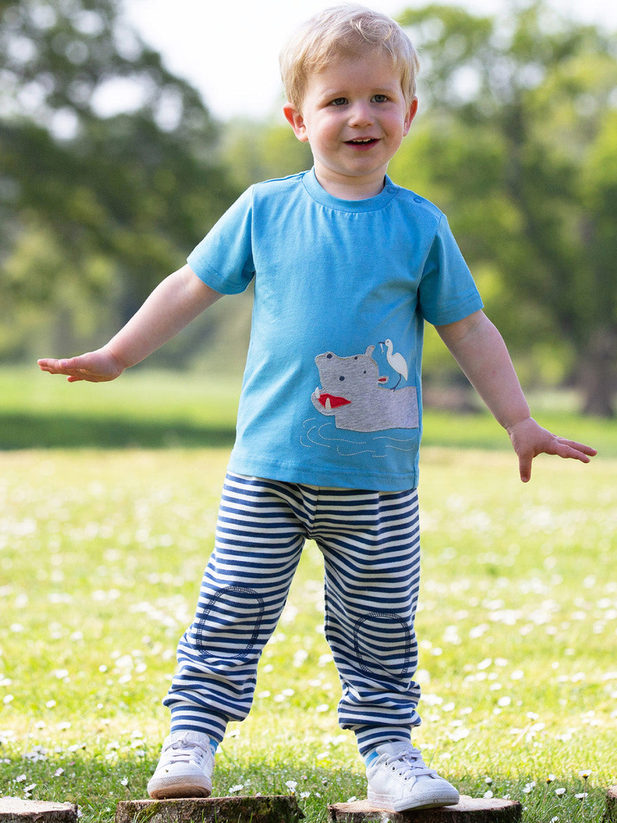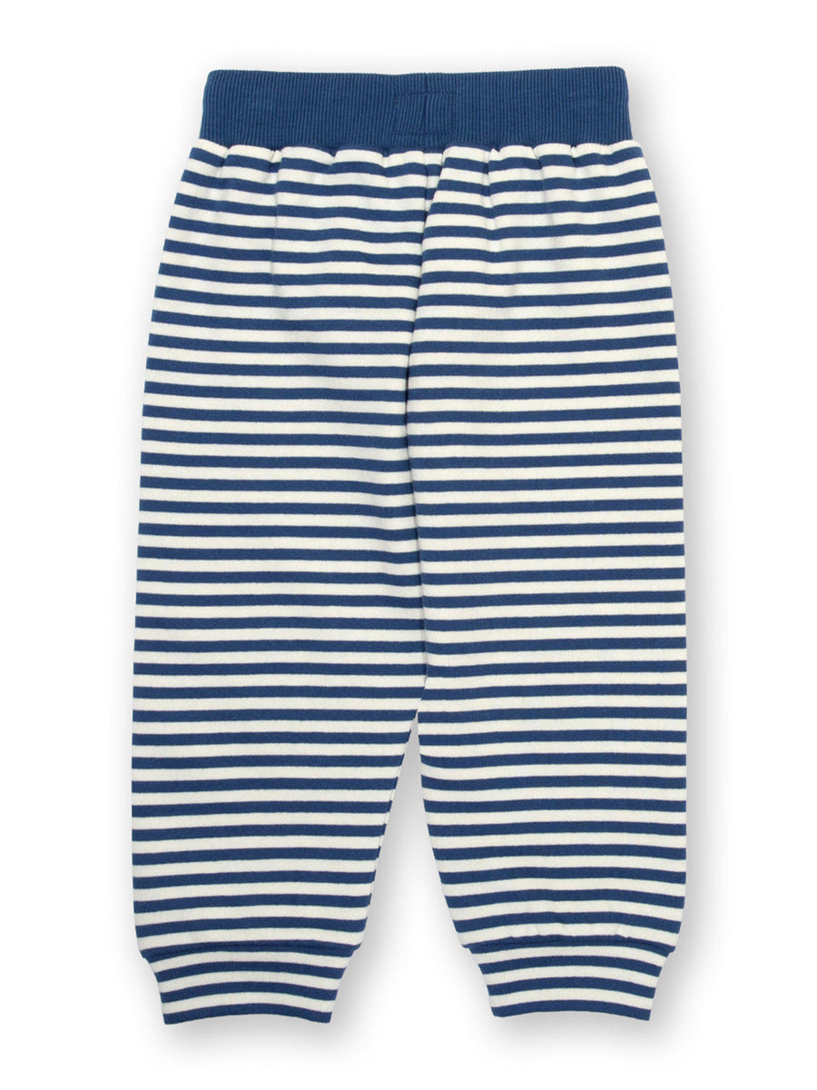 Get set and go in our navy blue and cream yarn dyed stripe joggers! Made from super comfy brush back sweat fabric with ribbed cuffs and adjustable ties for a perfect fit. They are a must-have for days spent relaxing or adventuring. Wear with any of our coordinating t-shirts for the ultimate comfy look. Made from 100% organic cotton.